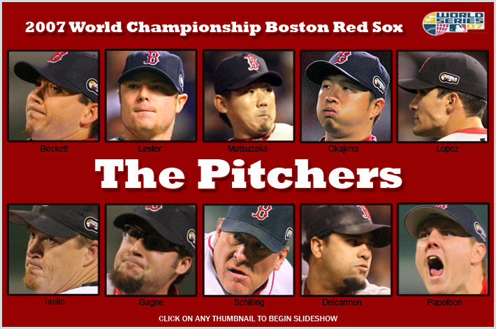 Eric Gagne and Jasen Veritek after the last out in the Red Sox 13-1 victory over the Rockies in game 1
